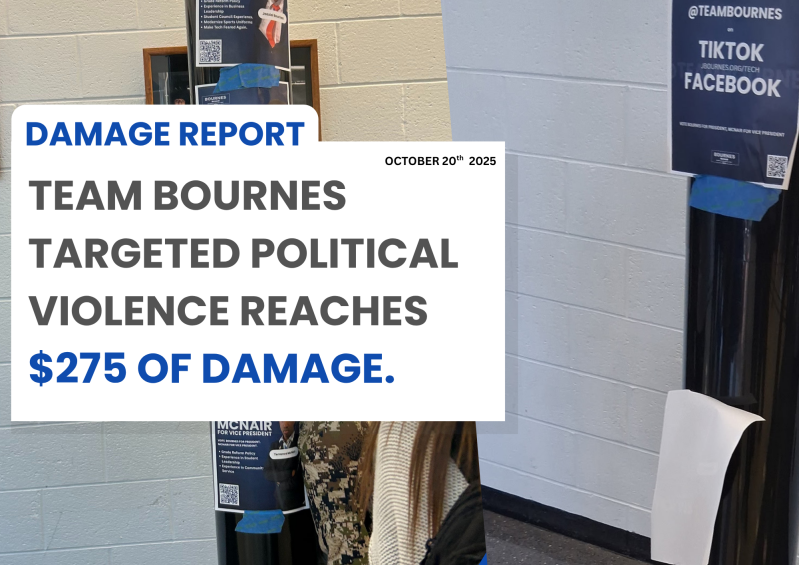 On Monday, October 20, 2025, at approximately 11:10 AM EST, Team Bournes campaign materials were found missing from a designated display pole in a public commons area. This marked the second confirmed removal of flyers from this location, indicating a deliberate attempt to disrupt youth-led civic engagement.